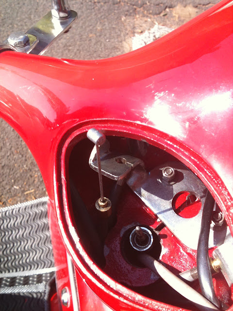 So, step 1, remove headlamp & speedo to reveal the frayed cable that was my 'up' gear selector.